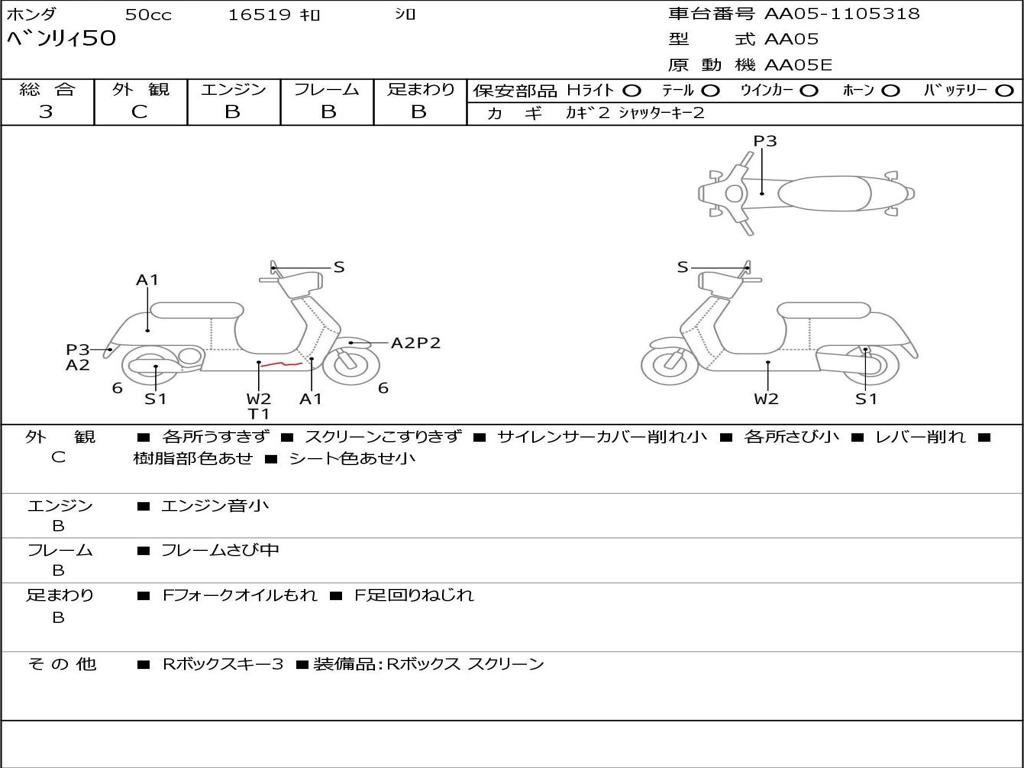 | Номер рамы / VIN | AA05-1105318 |