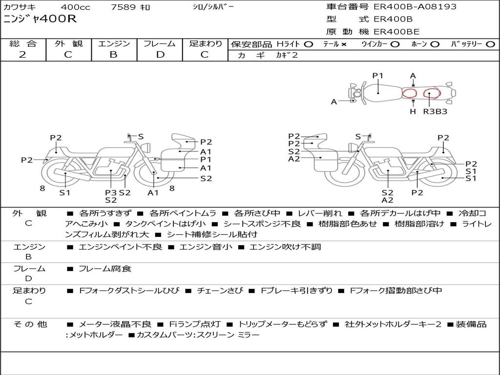 | Номер рамы / VIN | ER400B-A08193 |