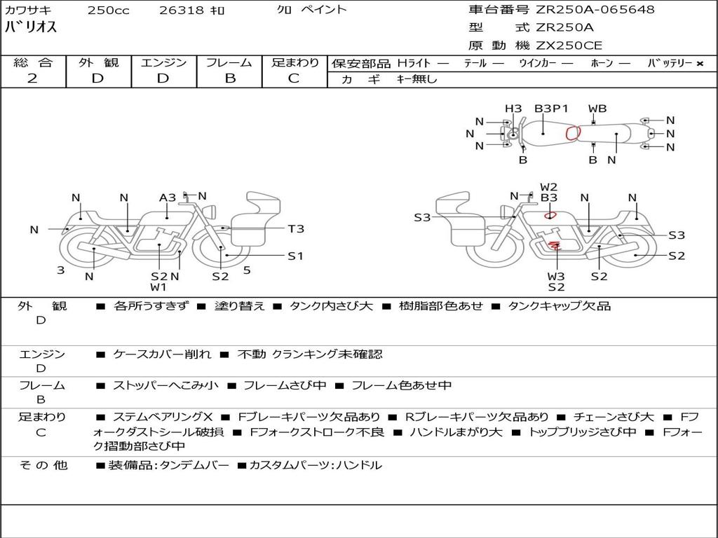 | Номер рамы / VIN | ZR250A-065648 |