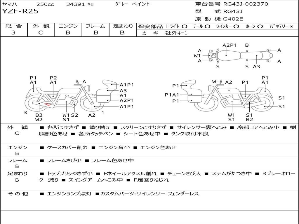 | Номер рамы / VIN | RG43J-002370 |
