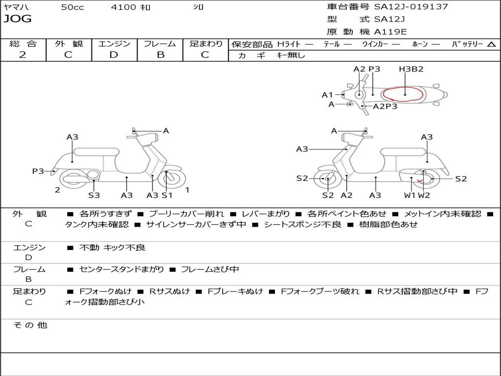 | Номер рамы / VIN | SA12J-019137 |