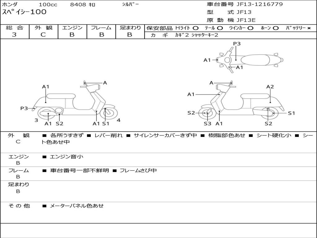 | Номер рамы / VIN | JF13-1216779 |