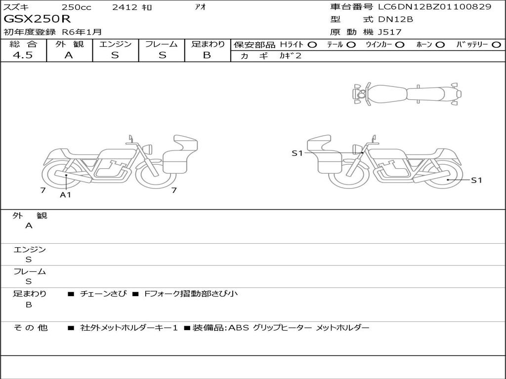 | Отметка об участии мотоцикла в авариях | Мотоцикл не участвовал в ДТП |