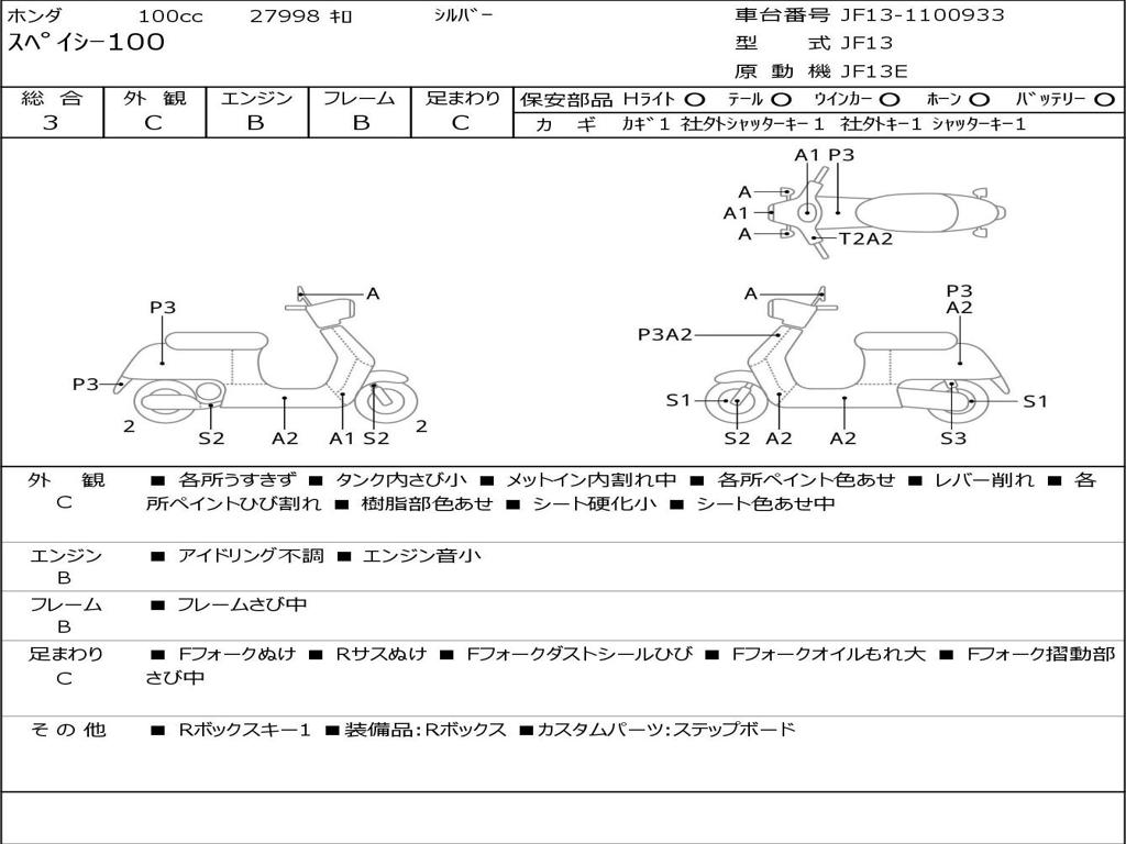 | Номер рамы / VIN | JF13-1100933 |