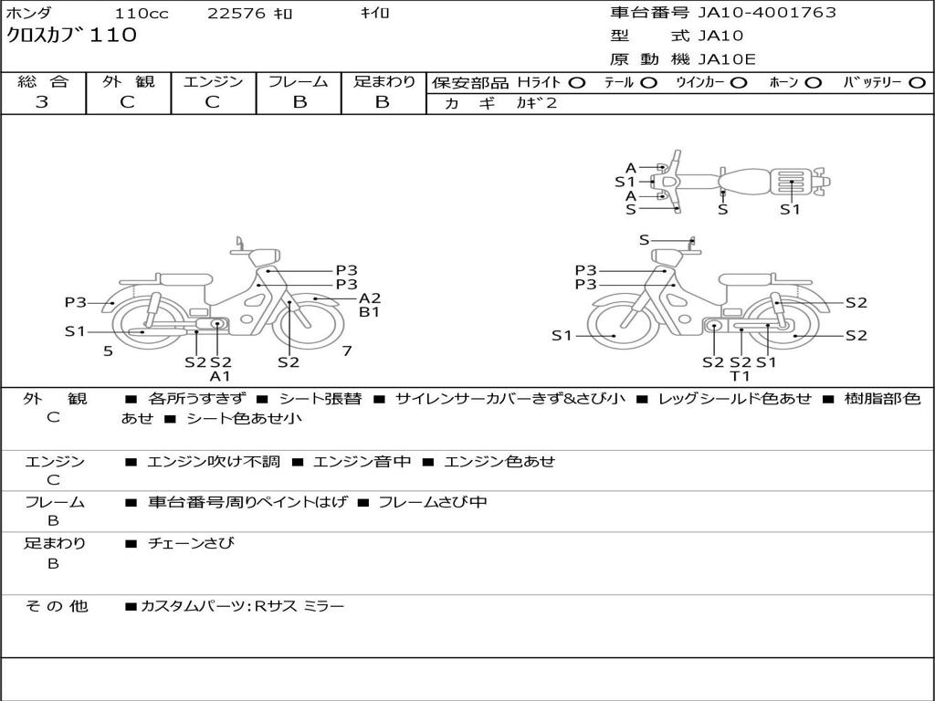 | Номер рамы / VIN | JA10-4001763 |