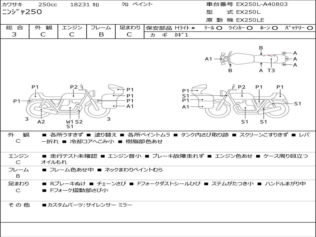 | Номер рамы / VIN | EX250L-A40803 |