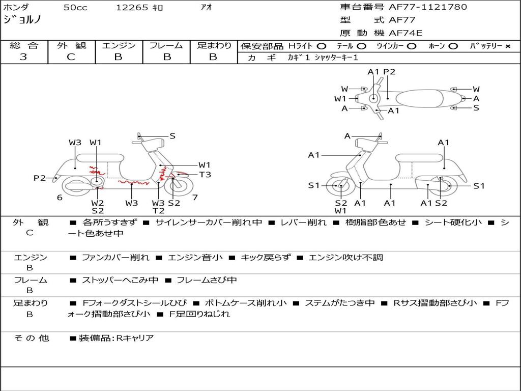 | Номер рамы / VIN | AF77-1121780 |