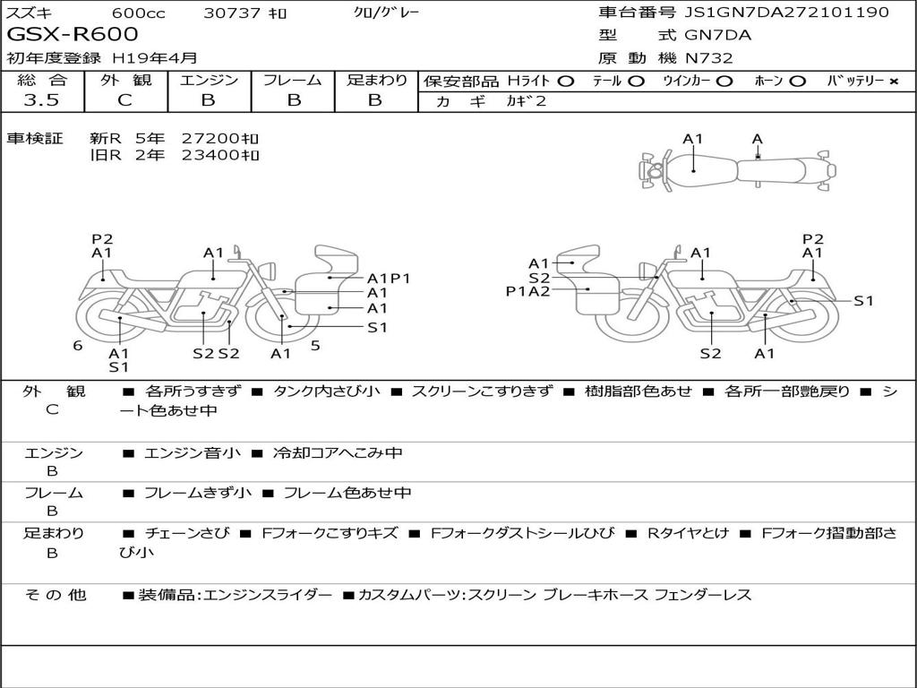 | Номер рамы / VIN | JS1GN7DA272101190 |