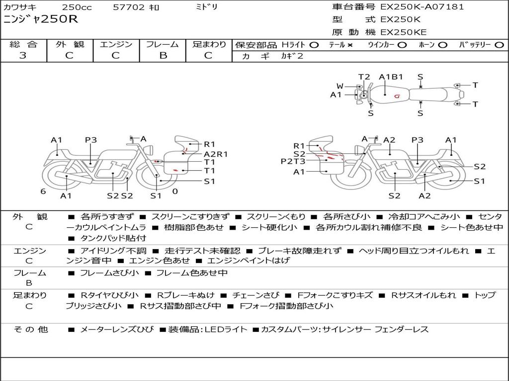 | Номер рамы / VIN | EX250K-A07181 |