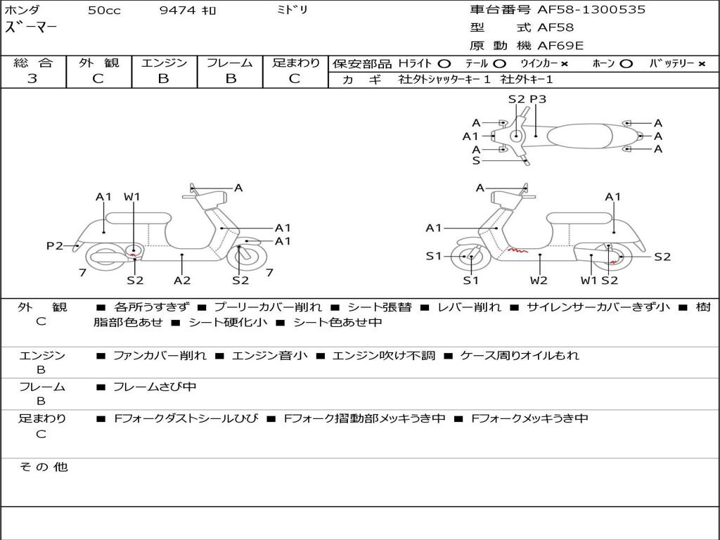 | Номер рамы / VIN | AF58-1300535 |