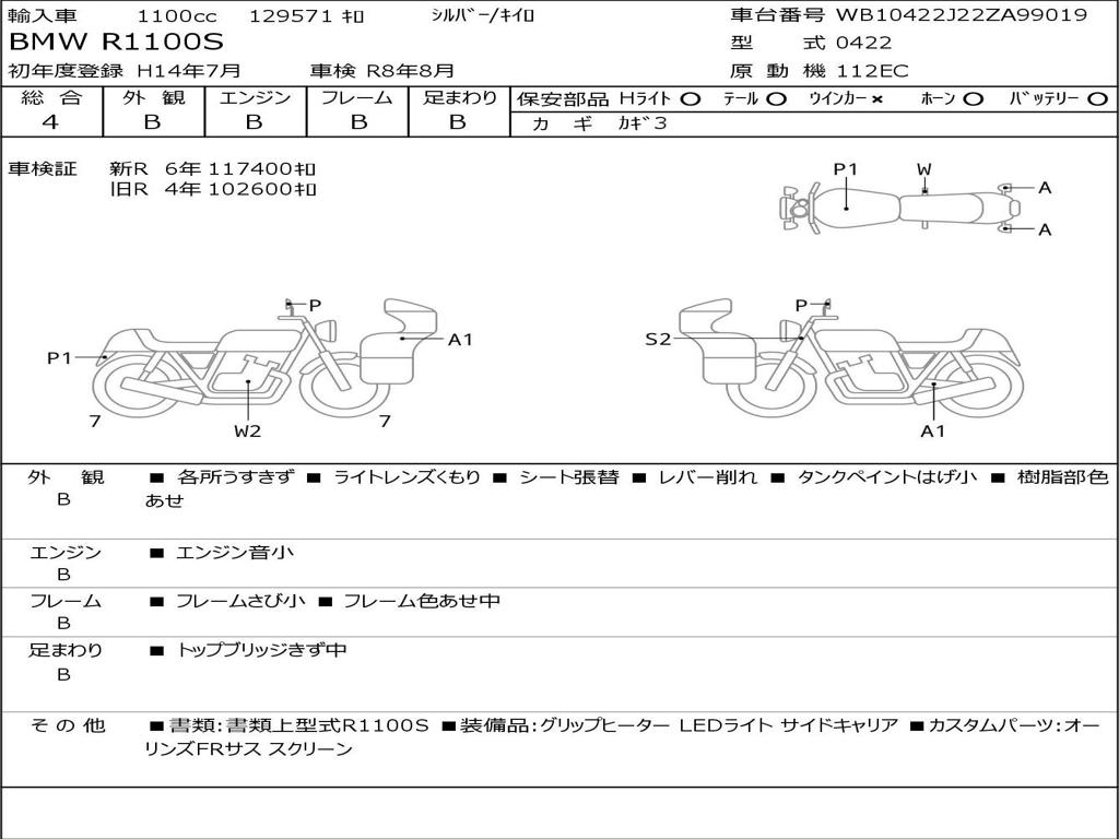 | Номер рамы / VIN | WB10422J22ZA99019 |