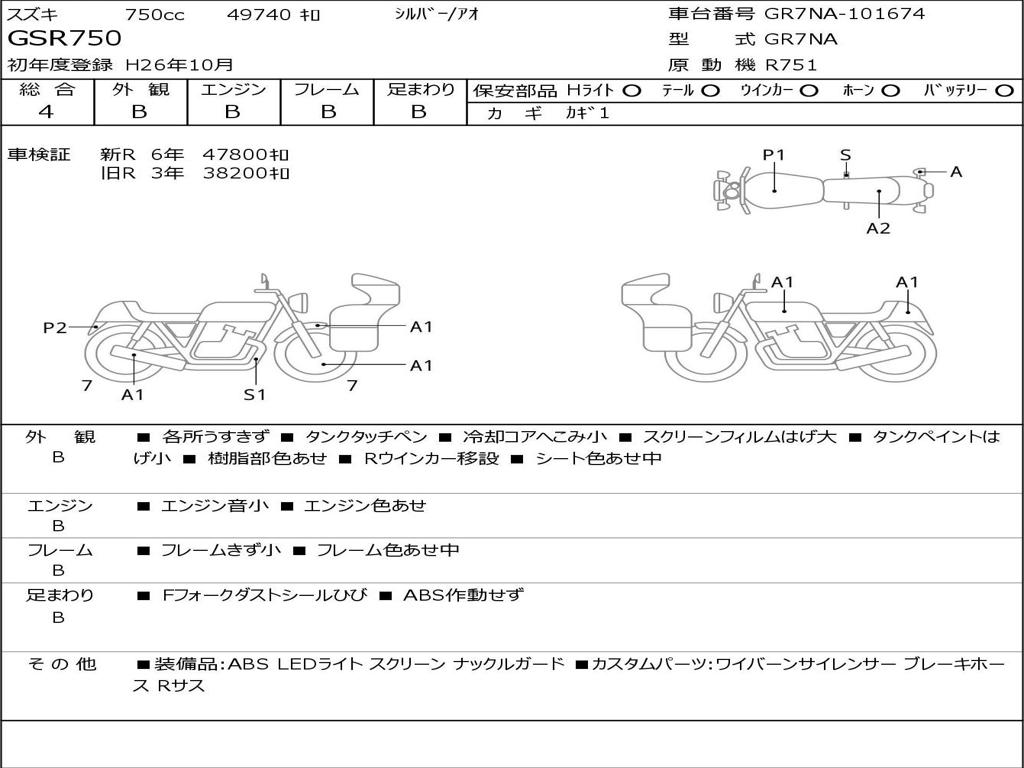 | Номер рамы / VIN | GR7NA-101674 |