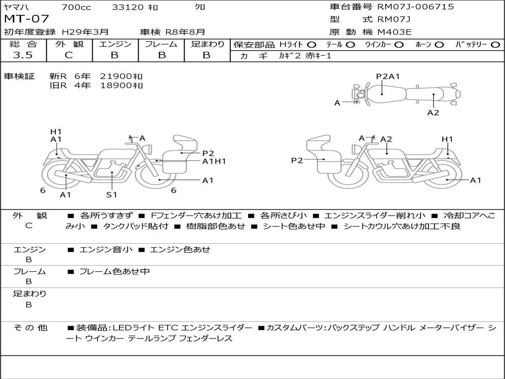 | Номер рамы / VIN | RM07J-006715 |
