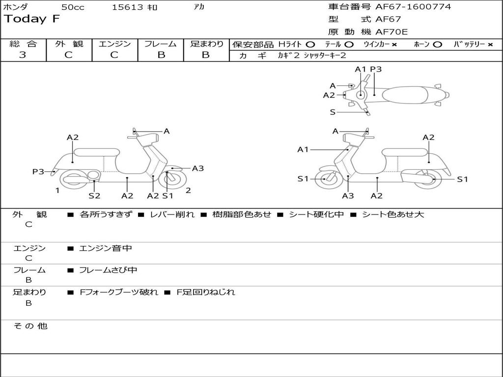 | Номер рамы / VIN | AF67-1600774 |
