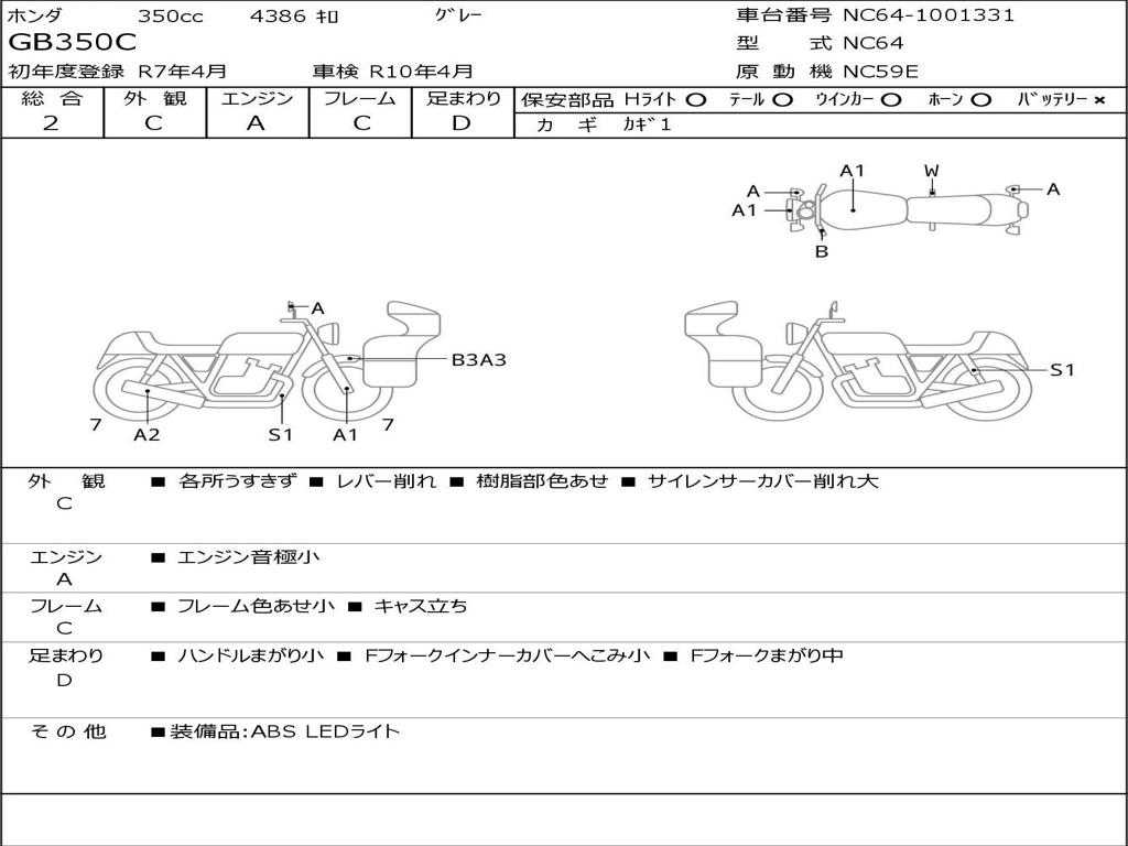| Номер рамы / VIN | NC64-1001331 |