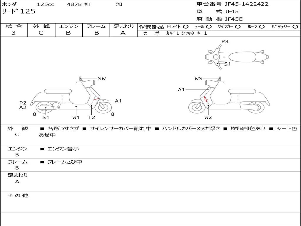 | Номер рамы / VIN | JF45-1422422 |