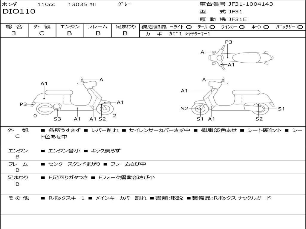 | Номер рамы / VIN | JF31-1004143 |