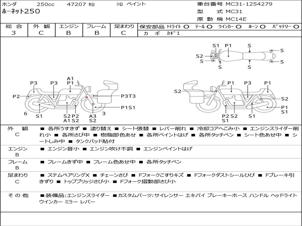 | Номер рамы / VIN | MC31-1254279 |