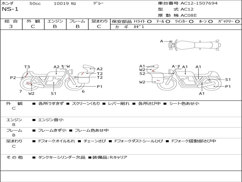 | Номер рамы / VIN | AC12-1507694 |