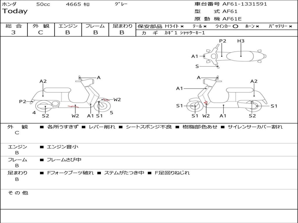 | Номер рамы / VIN | AF61-1331591 |