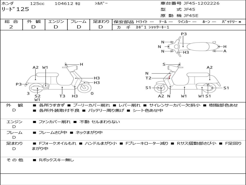 | Номер рамы / VIN | JF45-1202226 |