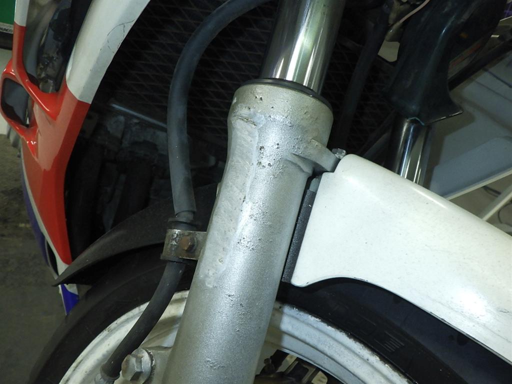 | внешняя часть вилки | потертость <много>, потек масла <много>, слабый, неисправность, перекрашено, неравномерность цвета ЛКП |