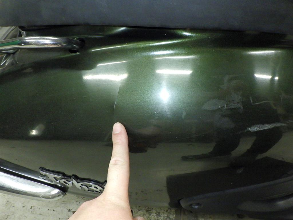 | бок | царапины <много>, износ(потертость) краски, трещины |