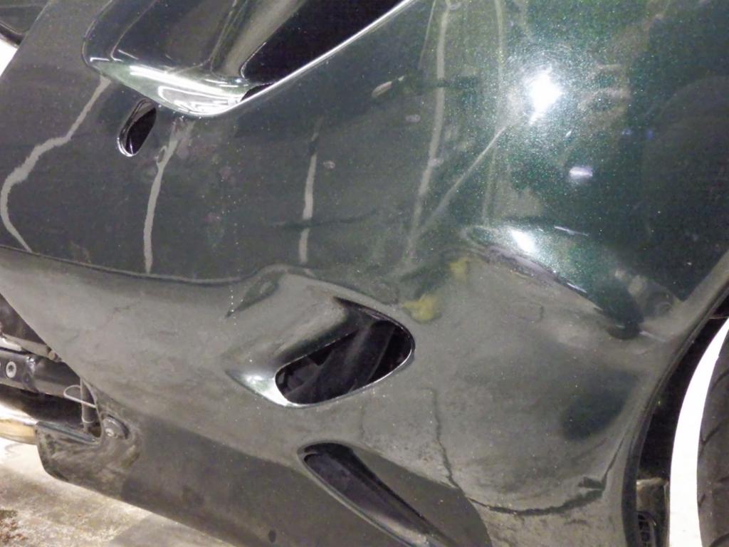| снизу | царапины <много>, частичная подкраска, потертость краски, трещины <много>, повреждено и отсутствует |