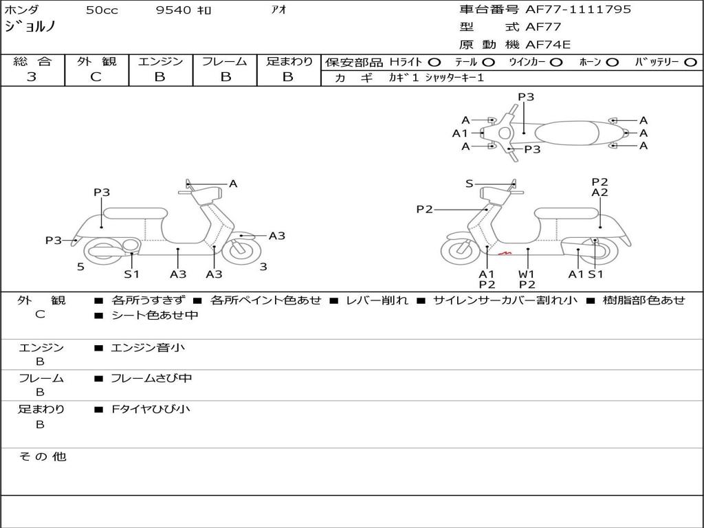| Номер рамы / VIN | AF77-1111795 |