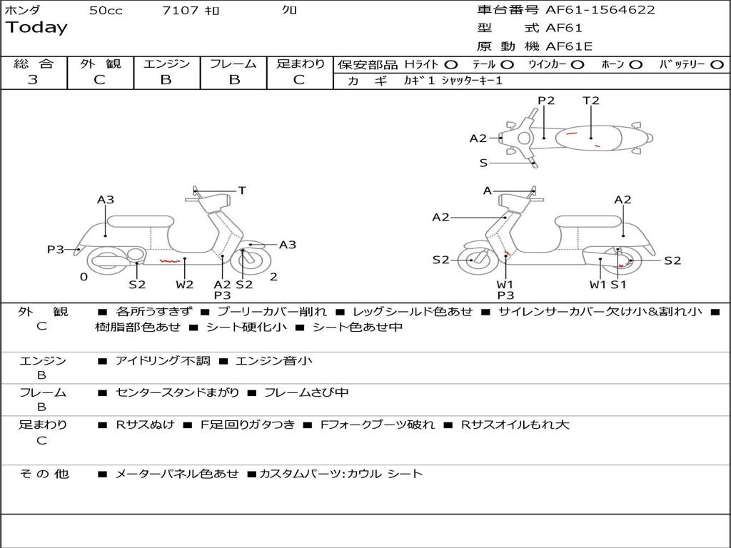 | Номер рамы / VIN | AF61-1564622 |