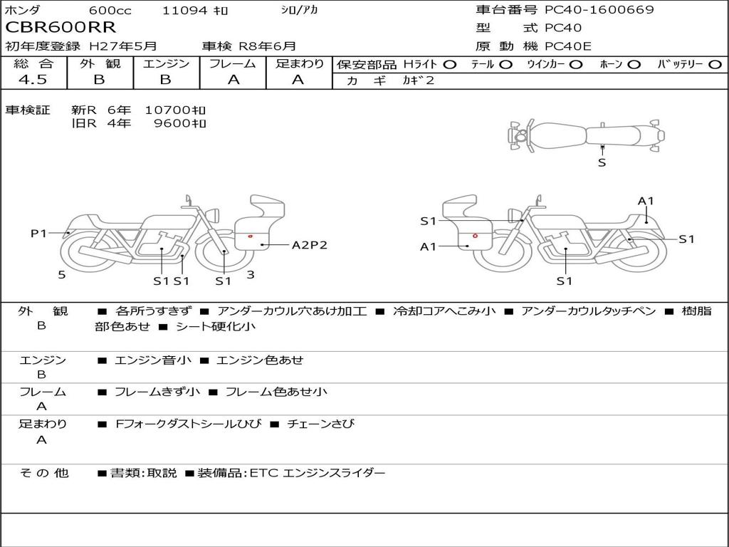 | Номер рамы / VIN | PC40-1600669 |