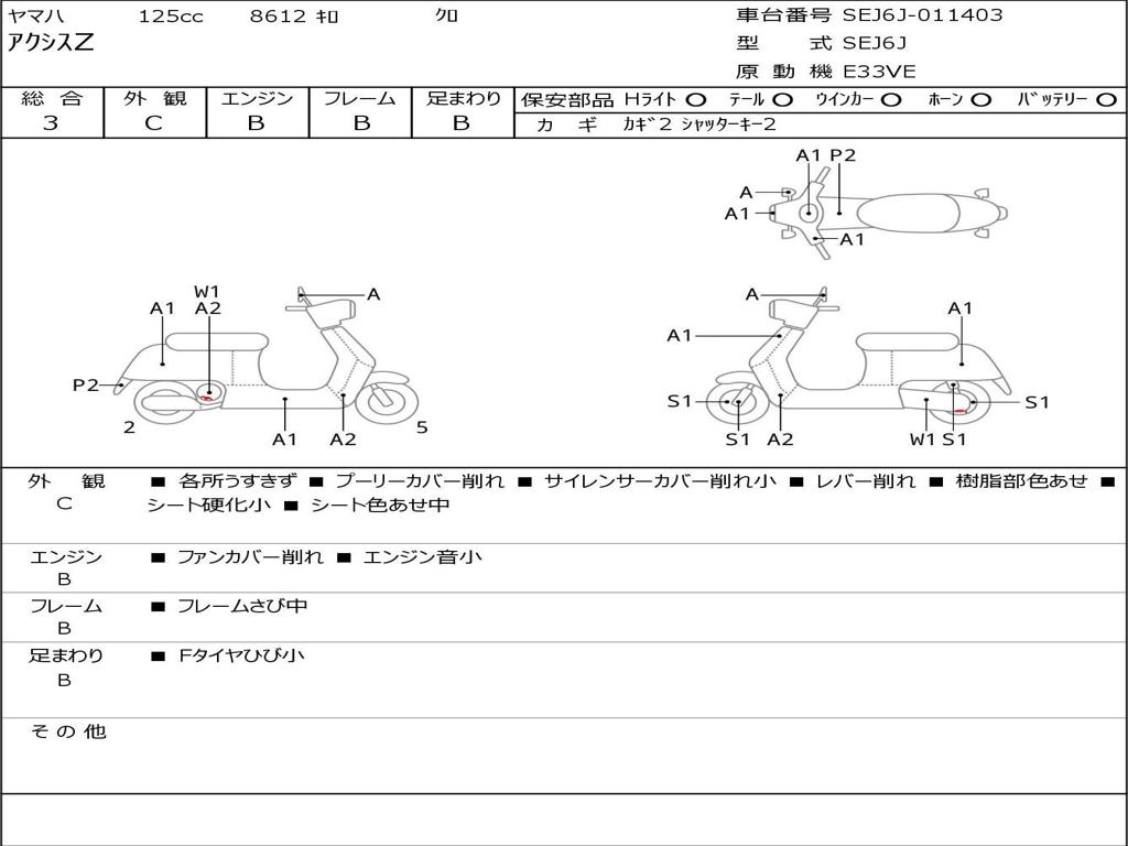 | Номер рамы / VIN | SEJ6J-011403 |