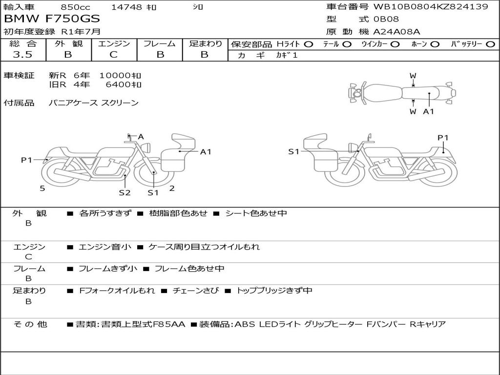 | Номер рамы / VIN | WB10B0804KZ824139 |
