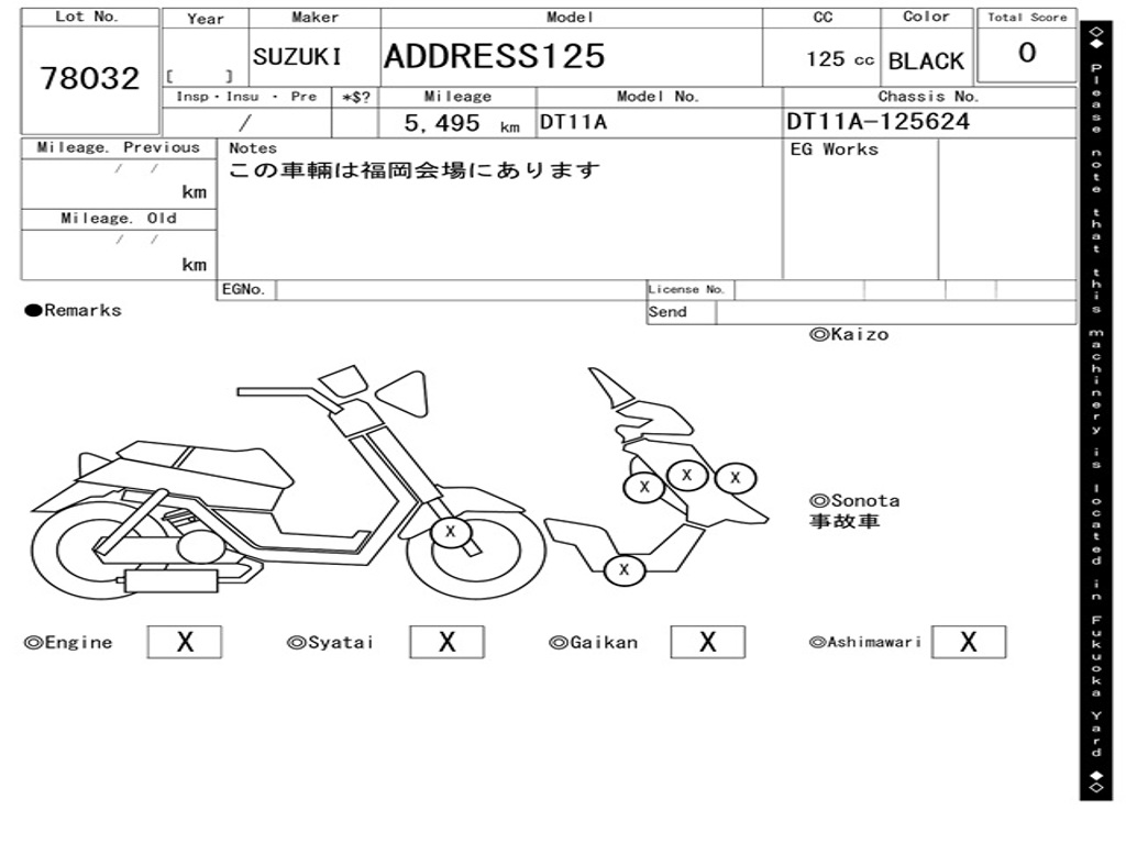 | Номер рамы / VIN | DT11A-125624 |