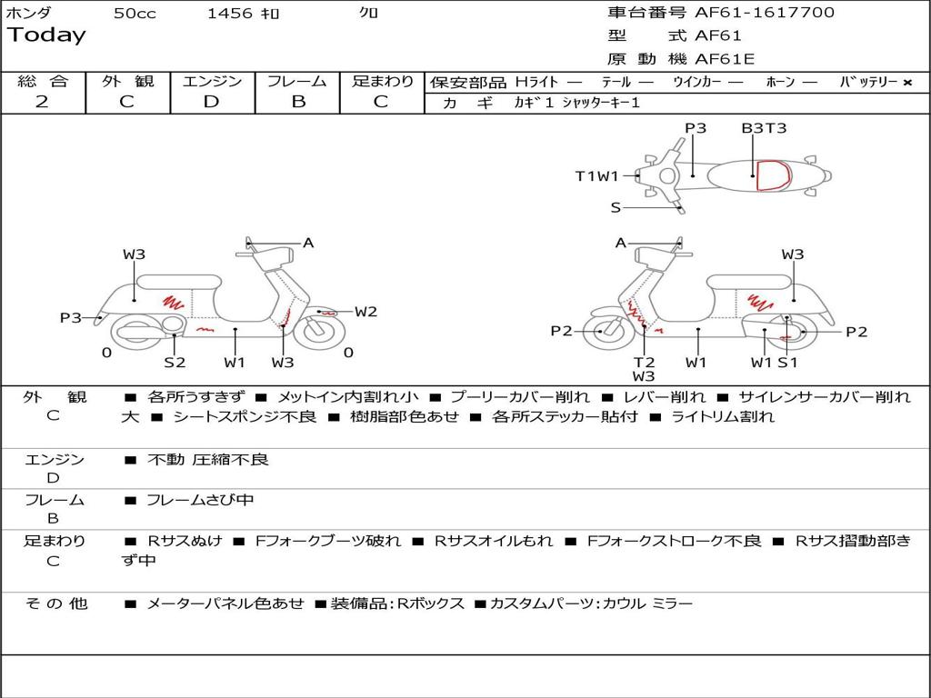 | Номер рамы / VIN | AF61-1617700 |