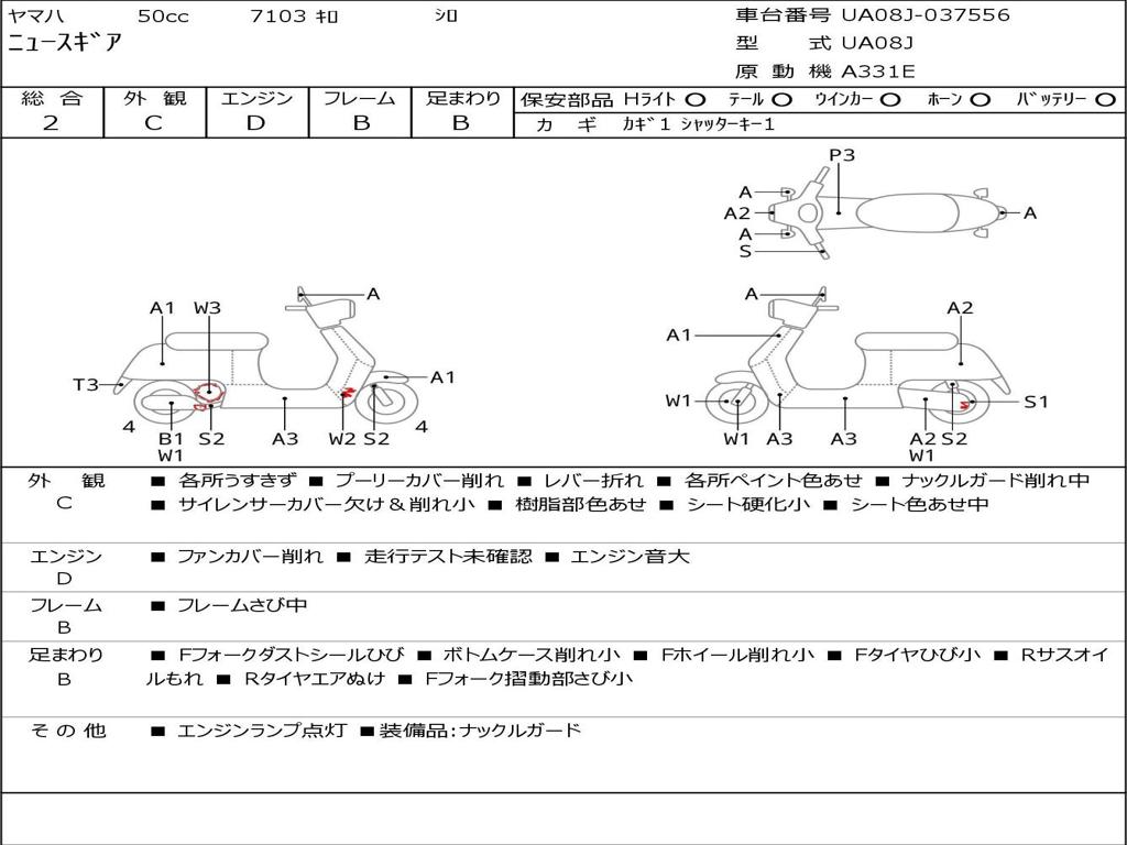 | Номер рамы / VIN | UA08J-037556 |