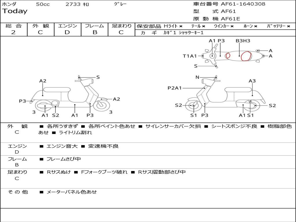 | Номер рамы / VIN | AF61-1640308 |