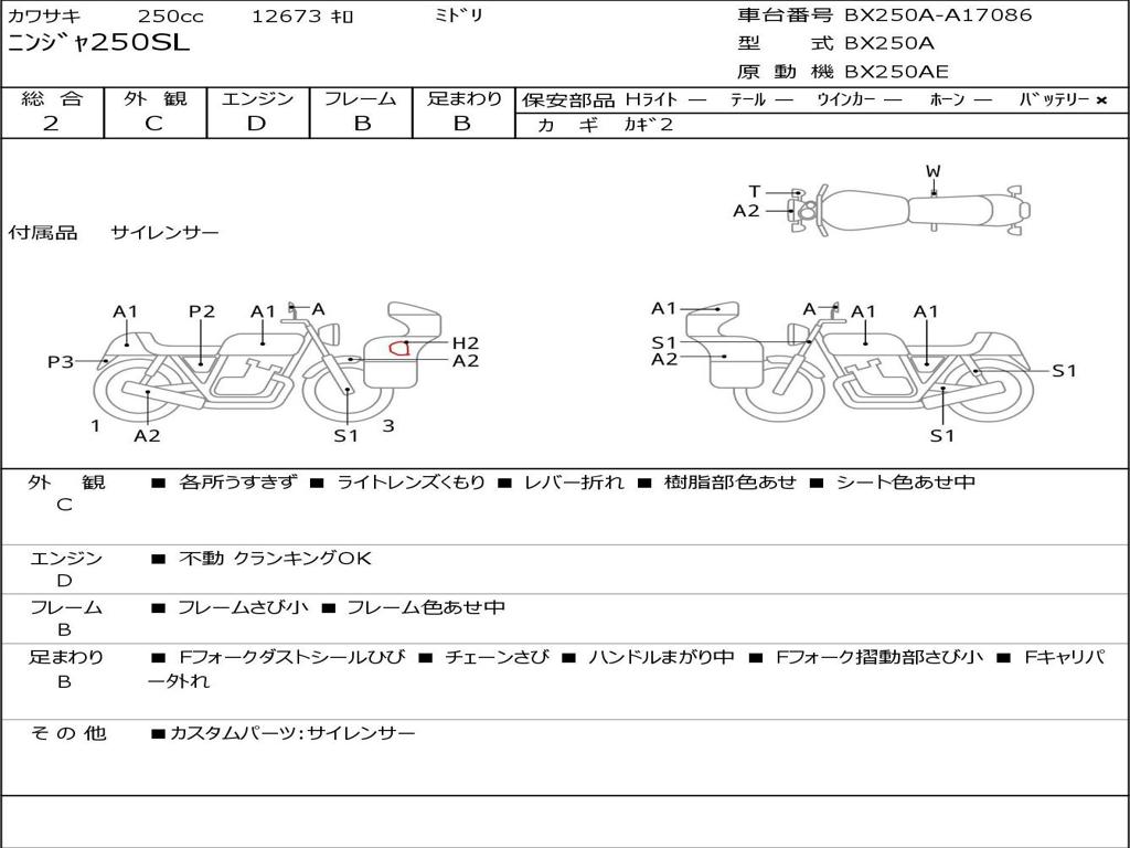 | Номер рамы / VIN | BX250A-A17086 |
