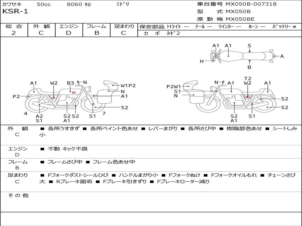| Номер рамы / VIN | MX050B-007318 |