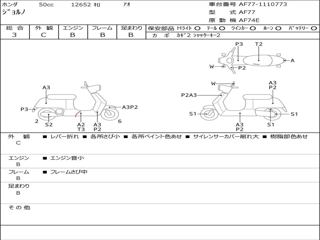 | Номер рамы / VIN | AF77-1110773 |