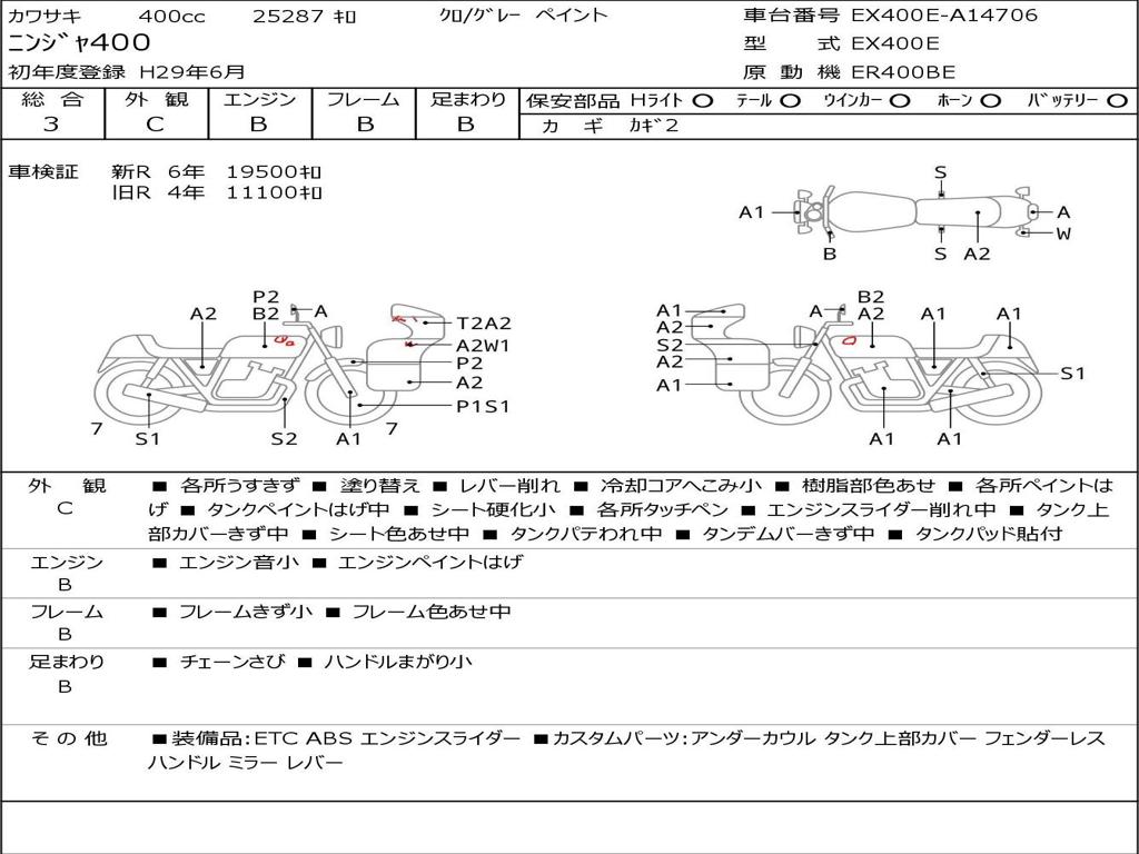 | Номер рамы / VIN | EX400E-A14706 |