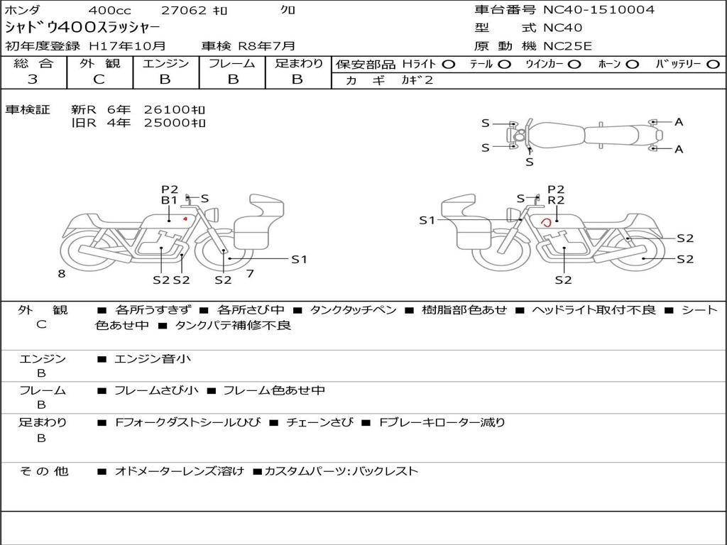 | Номер рамы / VIN | NC40-1510004 |