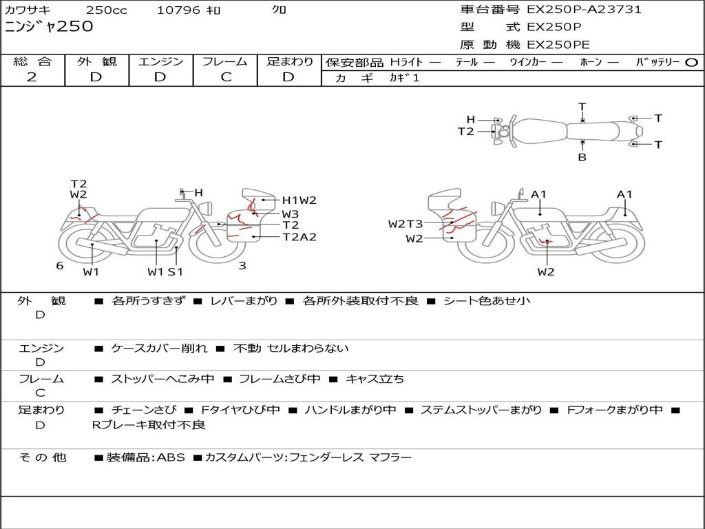 | Номер рамы / VIN | EX250P-A23731 |