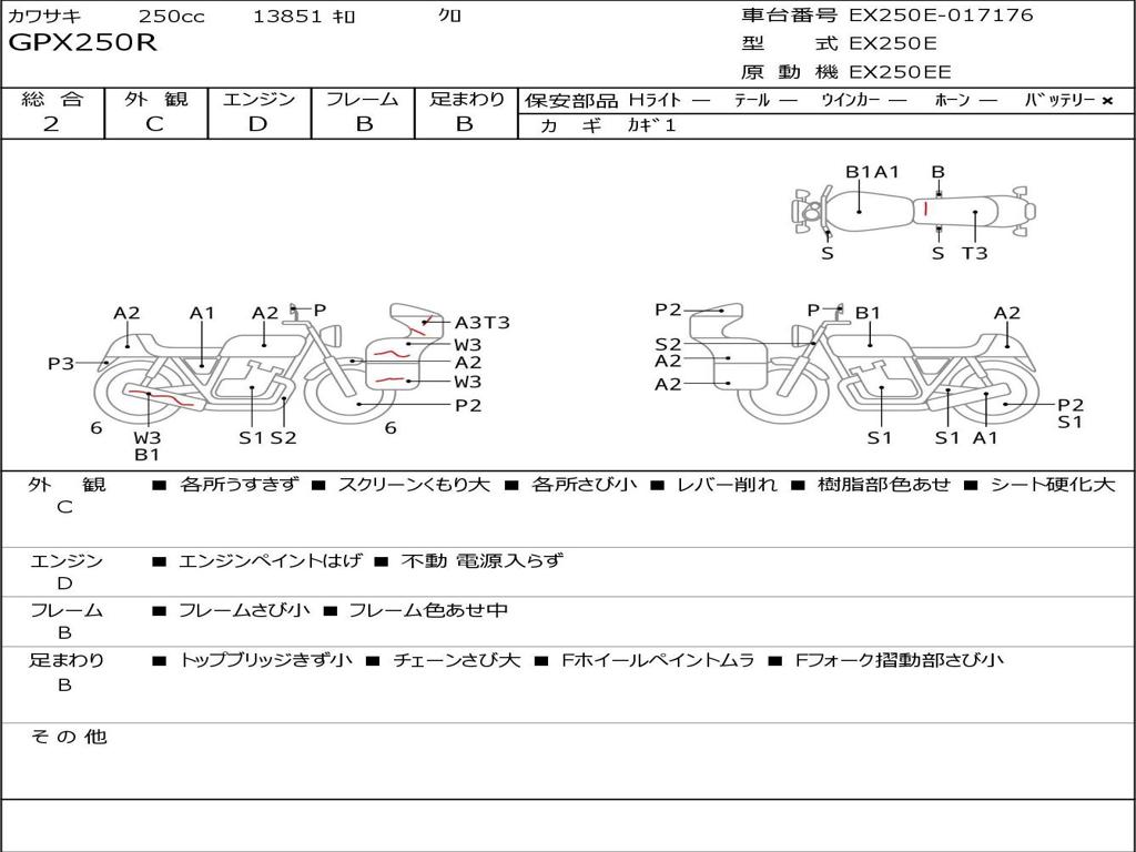 | Номер рамы / VIN | EX250E-017176 |