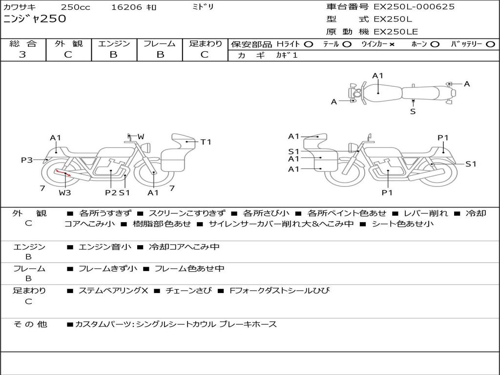 | Номер рамы / VIN | EX250L-000625 |