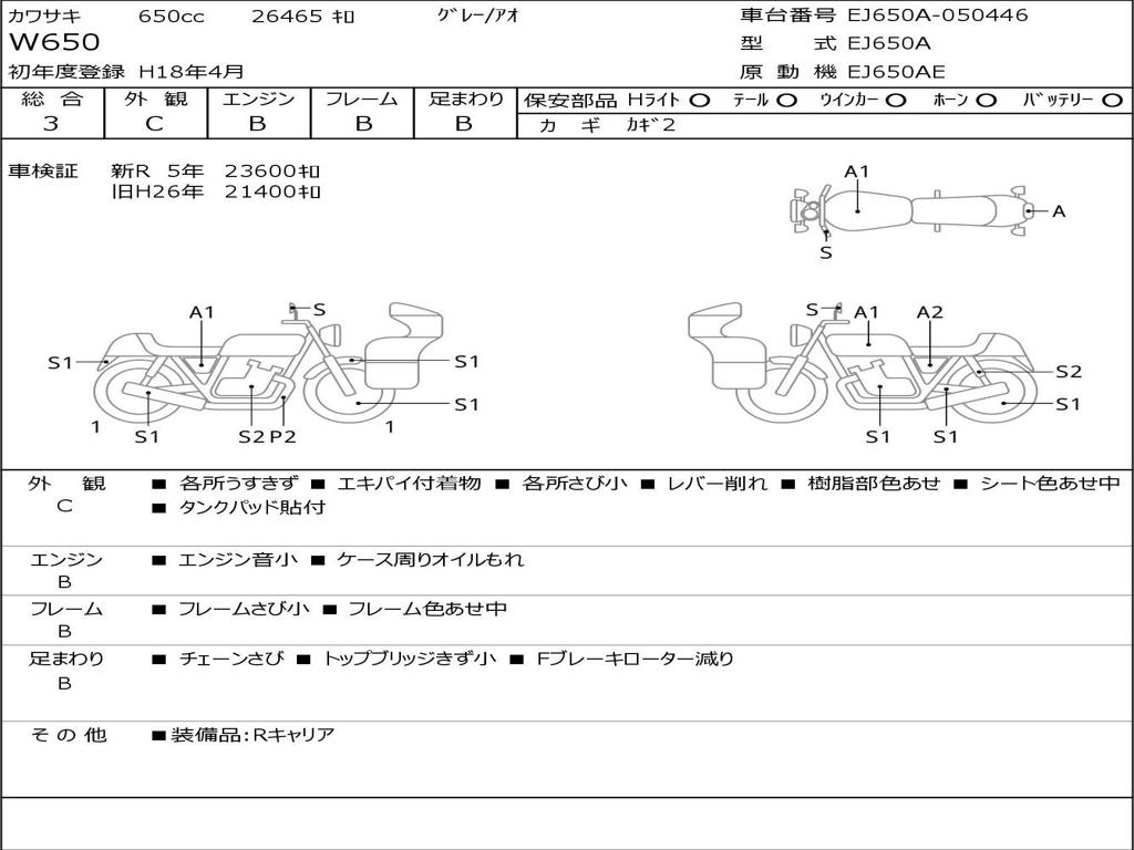 | Номер рамы / VIN | EJ650A-050446 |