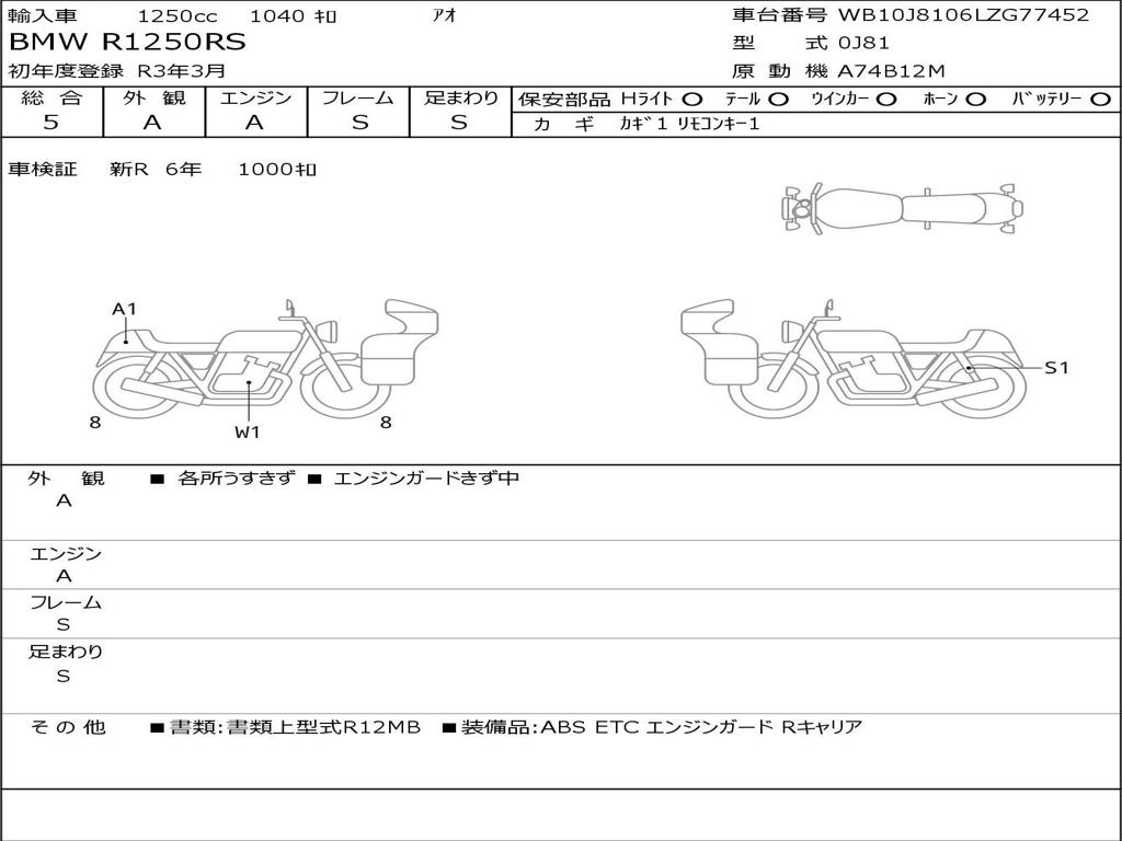 | Номер рамы / VIN | WB10J8106LZG77452 |