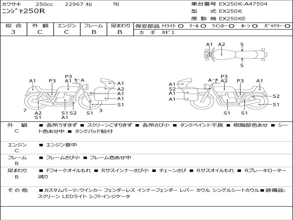 | Номер рамы / VIN | EX250K-A47504 |