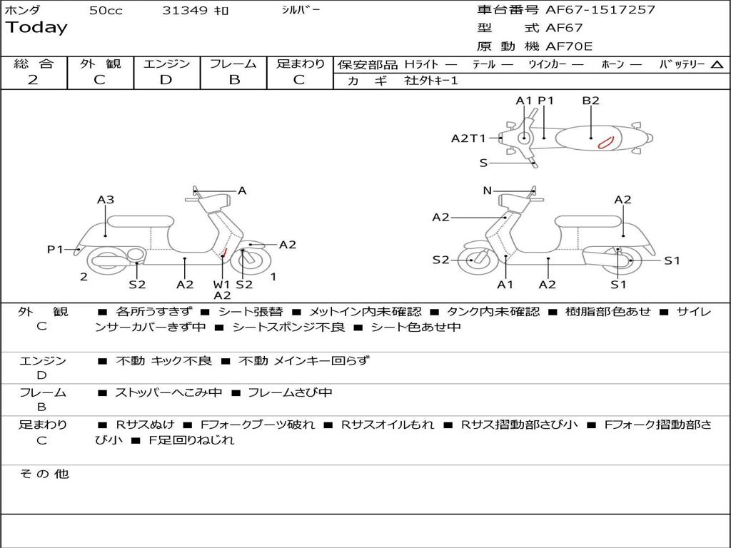 | Номер рамы / VIN | AF67-1517257 |
