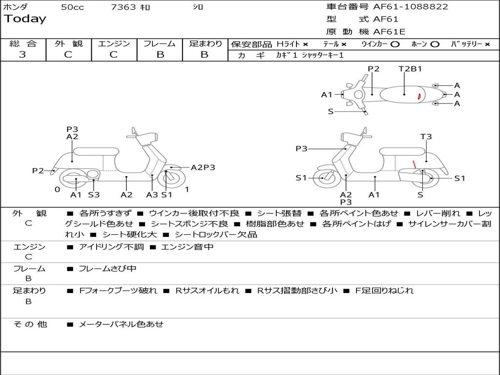 | Номер рамы / VIN | AF61-1088822 |